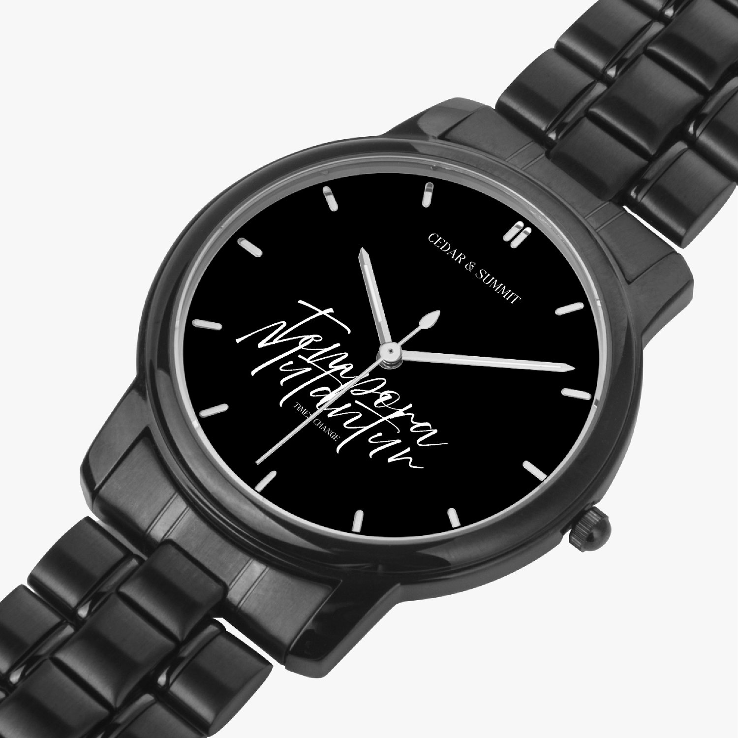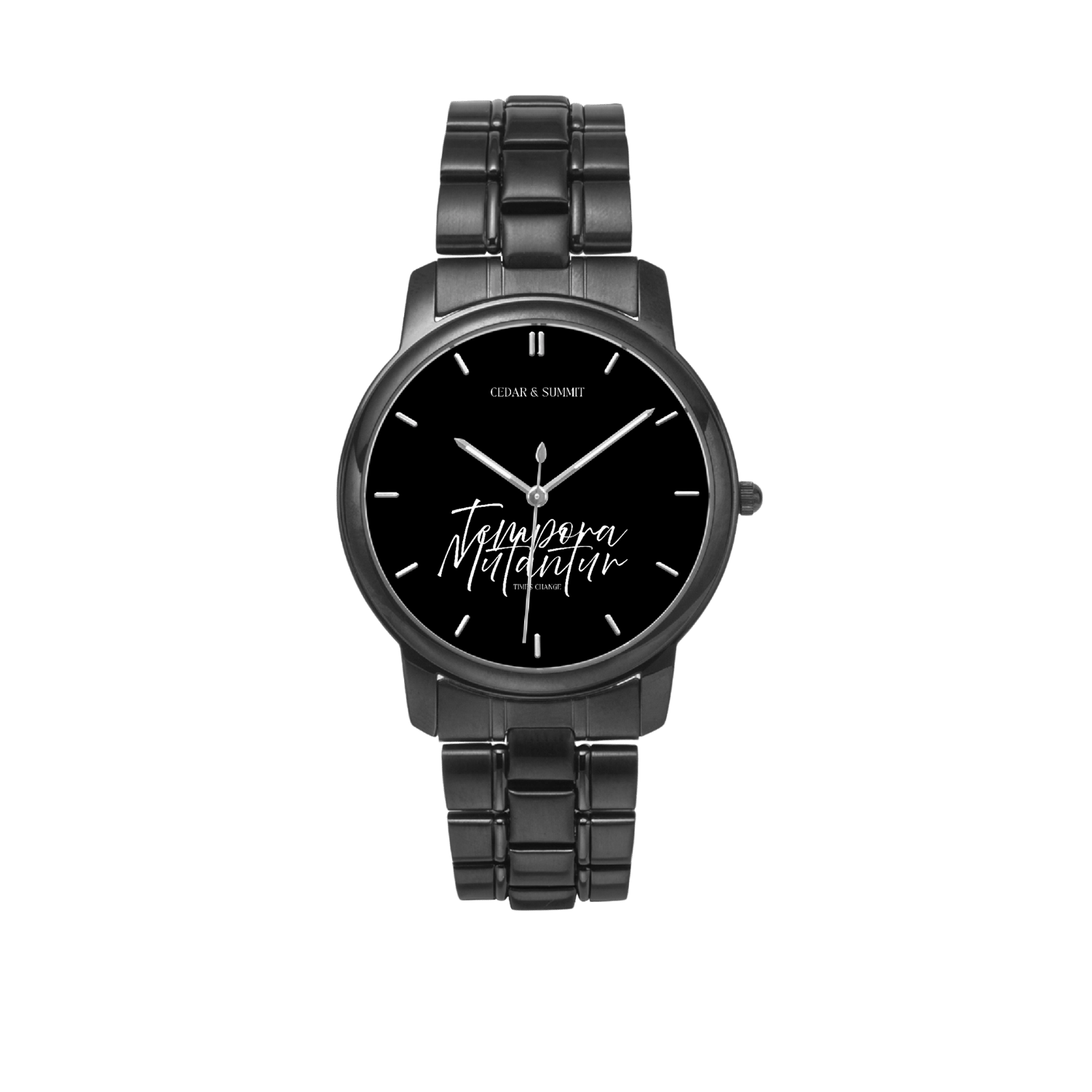 Its rhythm, its refinement, and its quiet certainty. Named for the Latin phrase Tempora Mutantur (“Times change”), this ultra-thin, quartz-faced timepiece blends heritage simplicity with a crisp, contemporary profile indicative of the Twin Cities’ Tale of Two Cities lifestyle. The phrase inside this watch is more than decoration—it’s a grounding point. A reminder on the wrist: Change is natural. Growth is chosen.