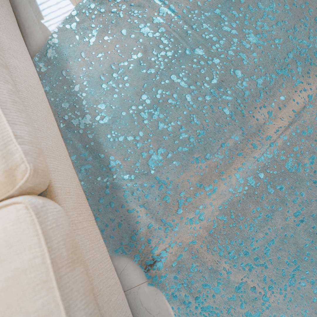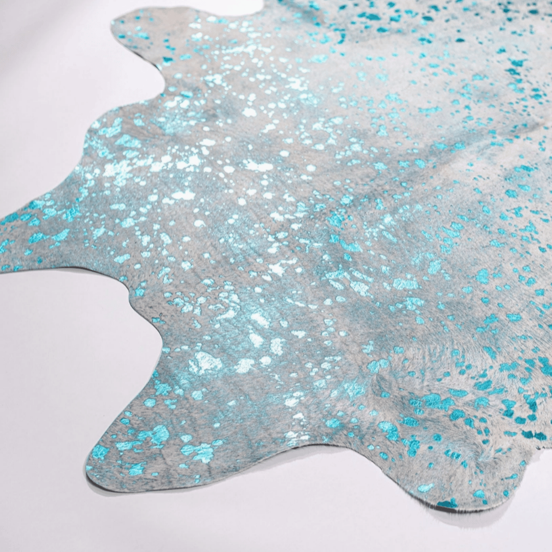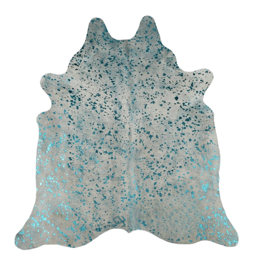 7 Ft. Metallic Turquoise & Off White Cowhide